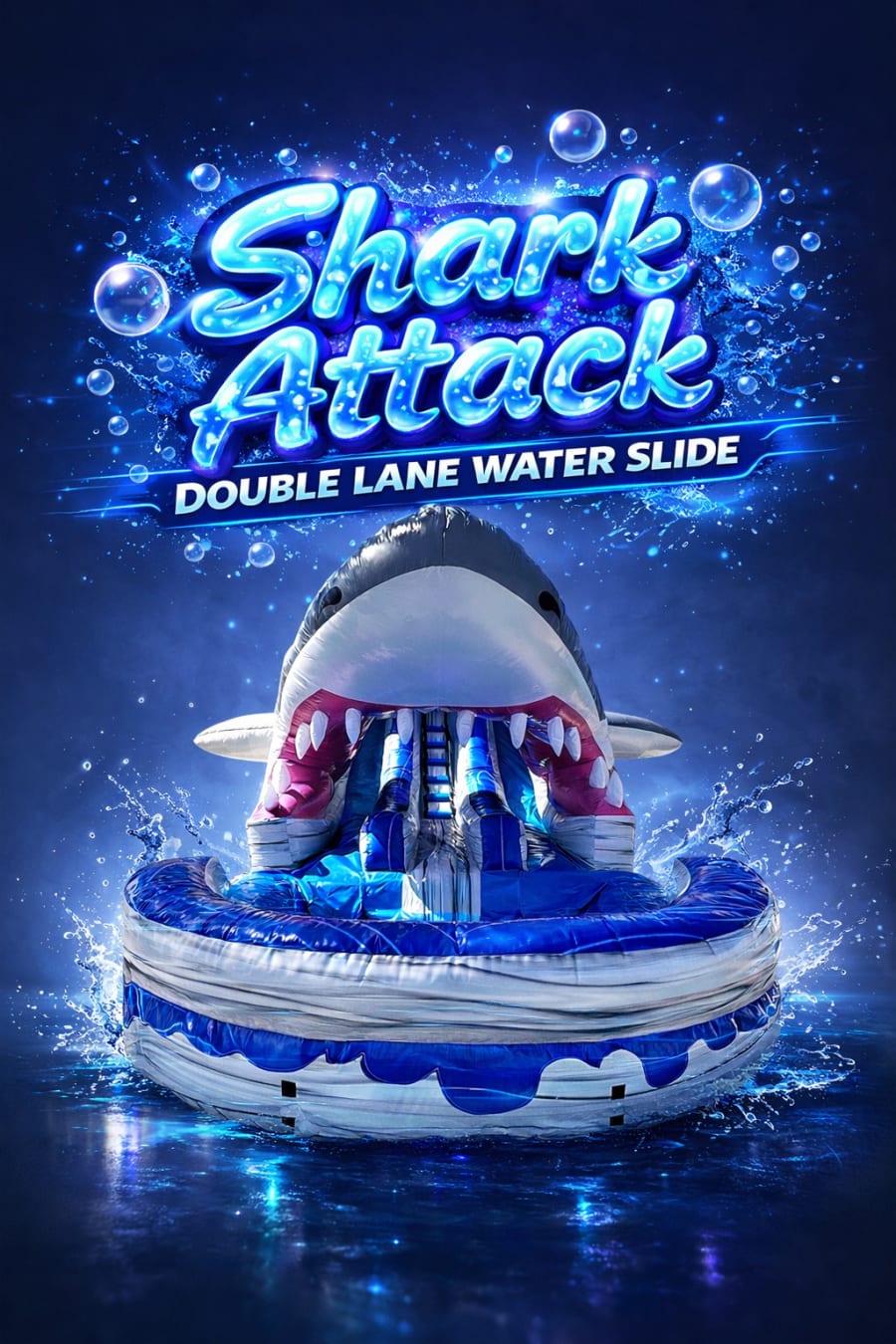 Ready to make a splash? Rent the Shark Attack Double Lane Water Slide today and upgrade your event with high-energy entertainment everyone will remember. 🌞🦈💦
